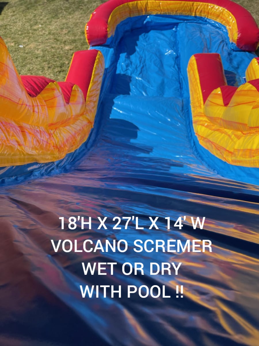 Don’t miss out on a chance to elevate your event with the main service + 18' Volcano Water Slide in delivery areas. Contact us now to secure your rental and dive into a world of aquatic excitement. Prepare for laughter, splashes, and endless fun as the 18' Volcano Water Slide takes center stage at your next gathering!